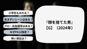 『顔を捨てた男』【PG12】(2024年)について、小学生以下の子供がいるファミリー向けに解説しています。